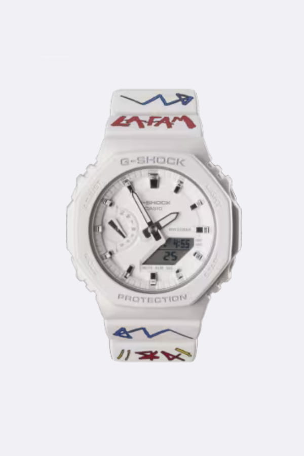Montre blanche à motif streetwear de G-SHOCK x La Fam