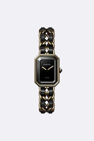 Montre noir et doré élégante à chaîne "Première" édition originale de Chanel