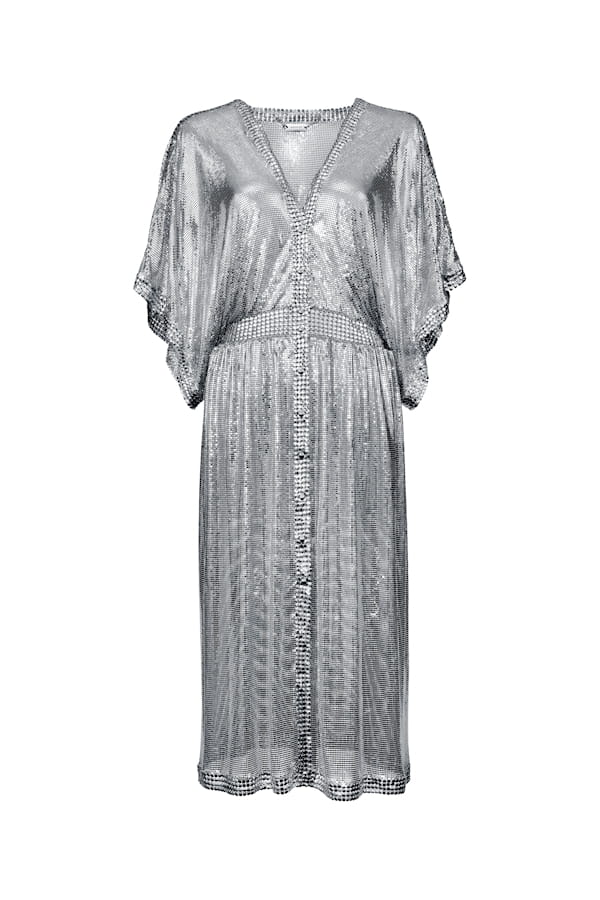 Robe argentée à encolure V et manches courtes de Rabanne H&M