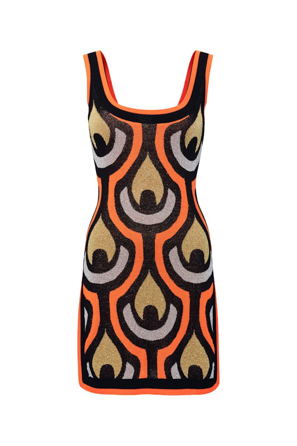 Robe en maille à imprimé géométrique orange, doré et argenté de Rabanne H&M