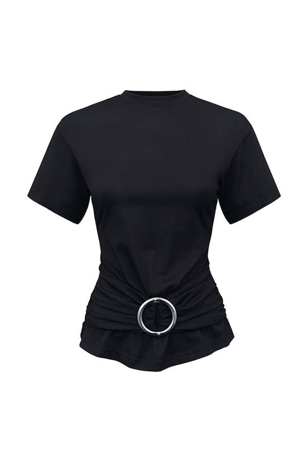 T-shirt noir drapé à boucle argentée de Rabanne H&M