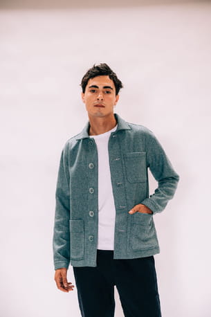 Veste en laine droite "Le Bleu Aubazine" de Soubacq Paris