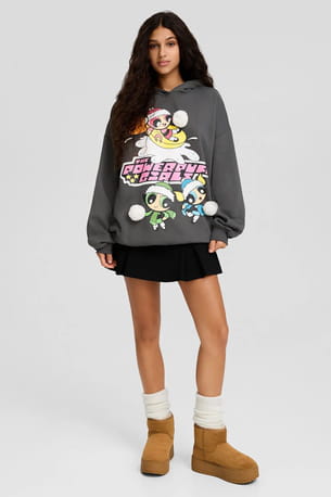 Pull de Noël à capuche imprimé Super Nanas de Bershka
