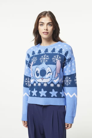 Pull de Noël en maille côtelée bleue "Stitch" de Disney x Jennyfer