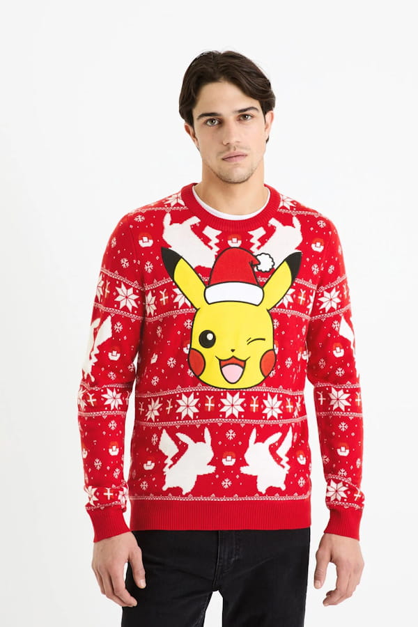 Pull de Noël en maille rouge "Pokémon" de Celio