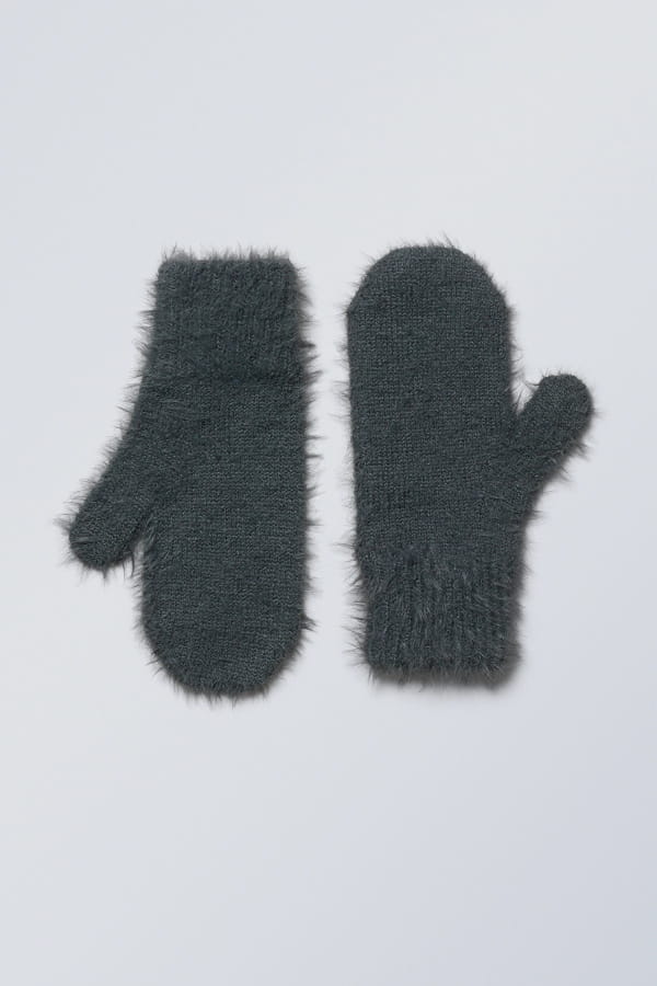 Mitaines gris foncé en tricot poilu "Ella" de Weekday