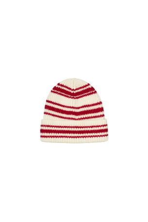 Bonnet blanc à rayures rouges en laine organique "Jules" de Skall Studio
