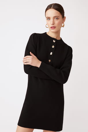 Robe pull noire à boutons dorés "Chadia" de Suncoo
