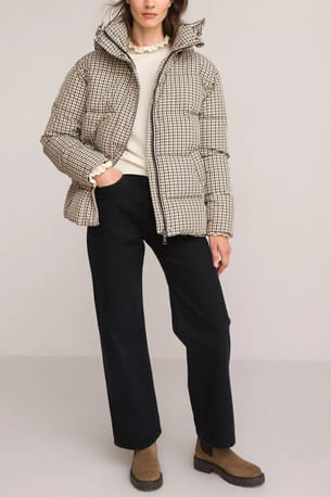 Doudoune à capuche motif carreaux