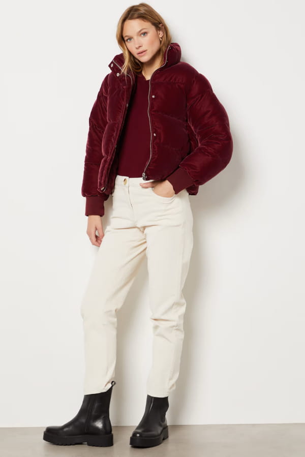 Doudoune bordeaux matelassée en velours d'Etam