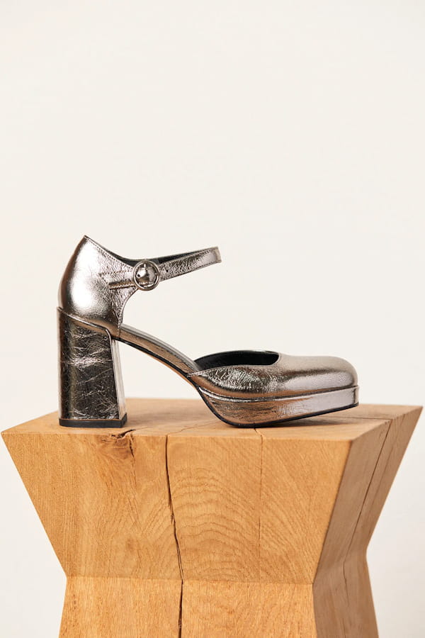 Babies en cuir argenté "Mathilde" de Mellow Yellow