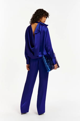 Top en satin bleu avec nœud d'Essentiel Antwerp