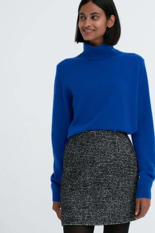 Pull en cachemire bleu à col roulé d'Uniqlo
