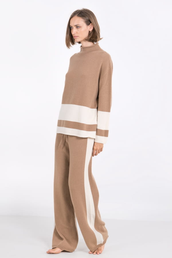 Pull en cachemire col cratère à bandes © Maison Cashmere