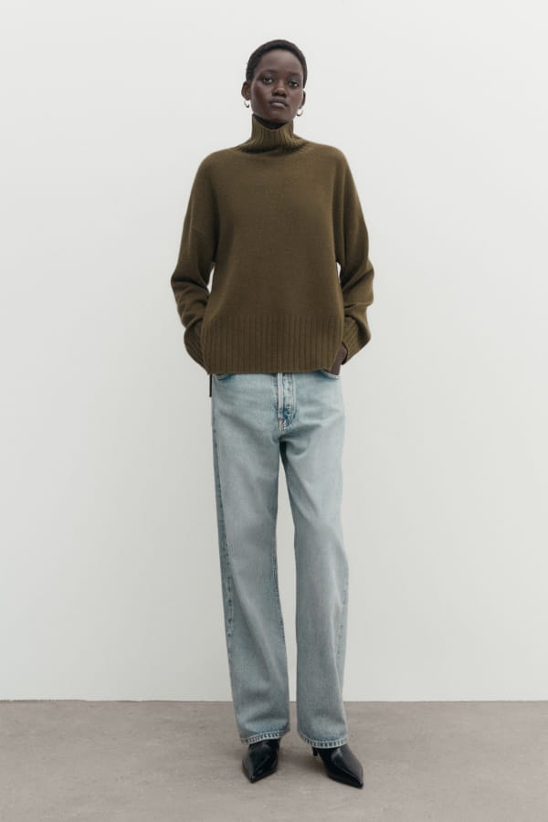 Pull en cachemire kaki oversize de Massimo Dutti