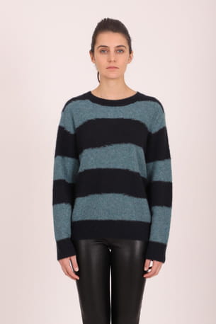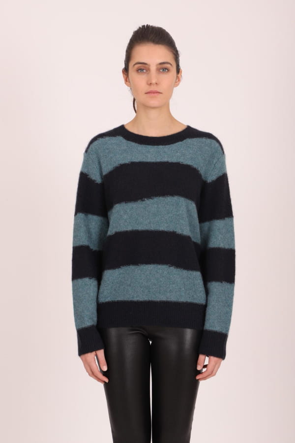 Pull en cachemire bleu et noir rayé bicolore d'Estheme