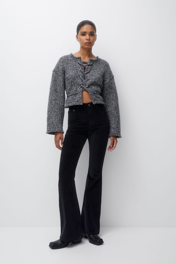 Pantalon noir en velours côtelé flare de Pull&Bear