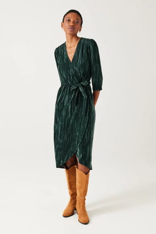 Robe verte en velours mi-longue de Promod
