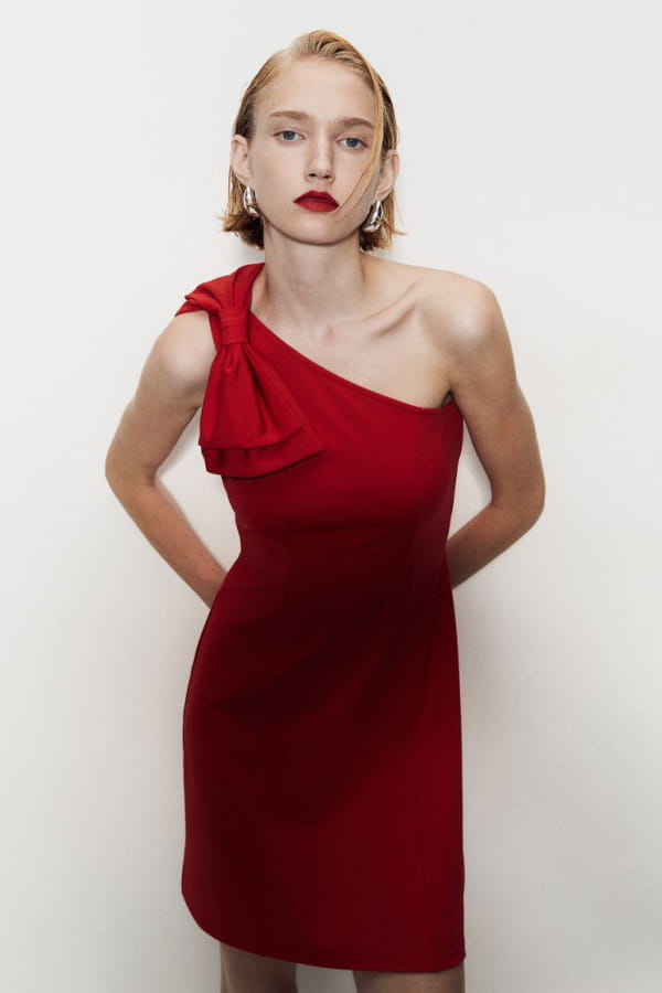 Robe asymétrique rouge avec nœud de H&M