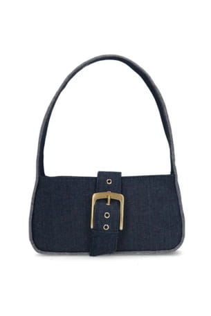 Sac à main bleu porté épaule en jean avec boucle de Sacha