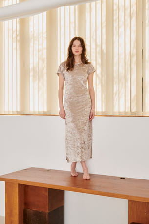 Robe T-shirt en velours doré © Albertine
