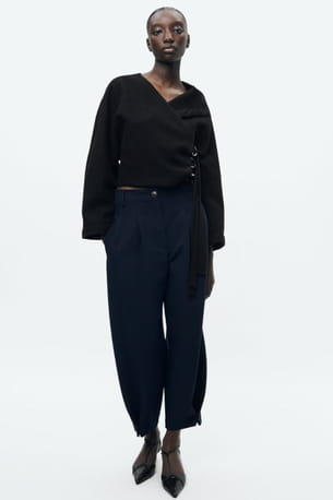 Pantalon bleu marine coupe carotte à pinces de Zara