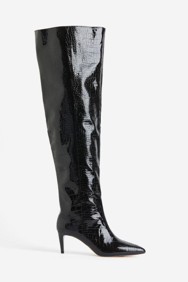 Cuissardes noires à petits talons aiguilles effet croco de H&M