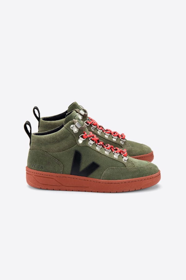 Baskets olive suédées à lacets rouges "Roraima" de Veja