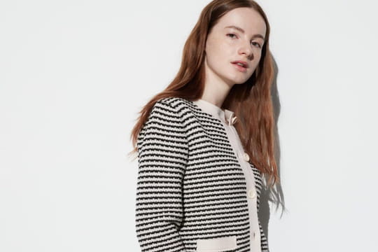Pour l'hiver 2024, Uniqlo a réinterprété la plus mythique des vestes Chanel pour élaborer sa dernière pièce tendance : un gilet court tricoté. Et il faut dire que cette pièce mode issue de la nouvelle collection a tout pour nous plaire. D'abord grâce à son esthétique luxueuse, à laquelle s'ajoute sa jolie coupe droite, ses boutons ronds et son tout petit prix, qui s'élève à seulement 39,90 euros. Disponible de la taille XXS au XXL, il y en a pour tout le monde et pour tous les goûts ! Le vêtement se décline dans un large éventail de couleurs, telles que le noir, le blanc cassé, le rose et le vert. Il existe également une version rayée, mais le succès a tellement été au rendez-vous qu’elle est en rupture de stock. Alors, n'hésitez pas à mettre une alerte afin de ne pas manquer son retour.