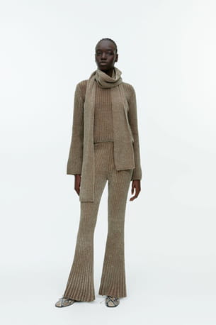 Pantalon côtelé en maille torsadée taupe d'Arket
