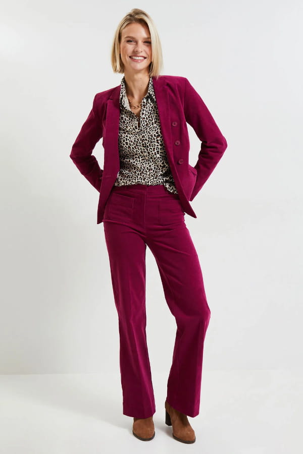 Veste blazer framboise en velours à coupe cintrée de Grain de Malice