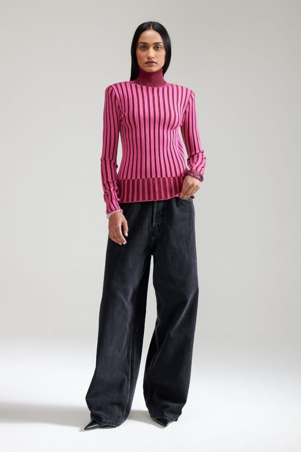 Pull côtelé rose et bordeaux © Valentine Witmeur Lab