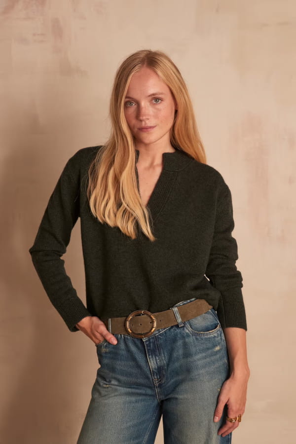 Pull en laine vert foncé à col esprit polo "Alto" de Maison 123