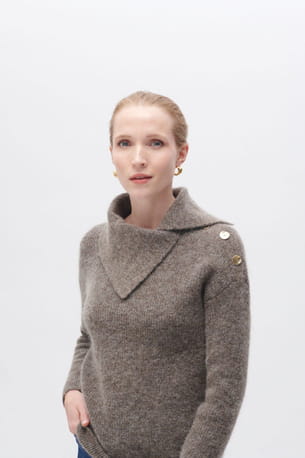 Pull taupe à col asymétrique "Melkior" de Caroll