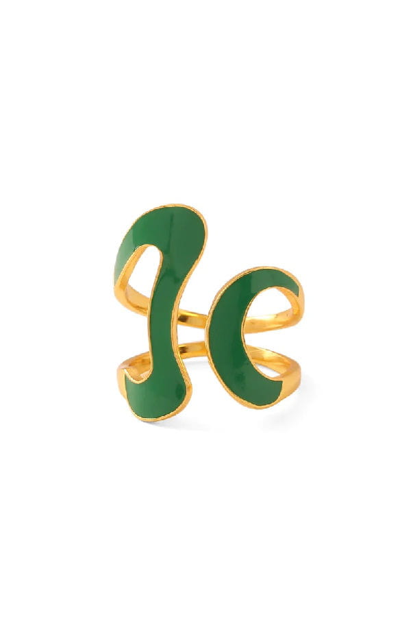 Bague vague verte émaillée faite main "Wave" de Deeaya