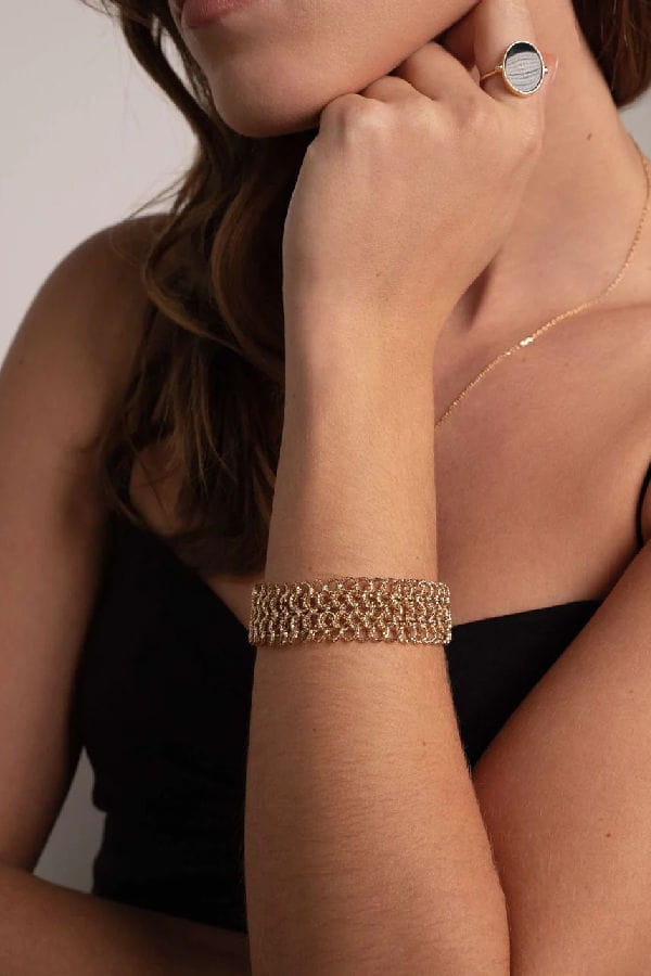 Bracelet manchette en tissage de chaînes © Orphée Bijoux