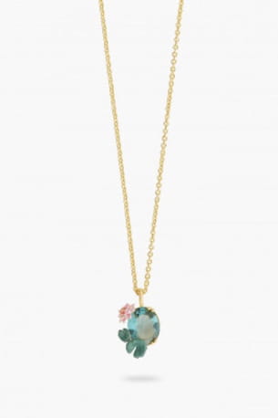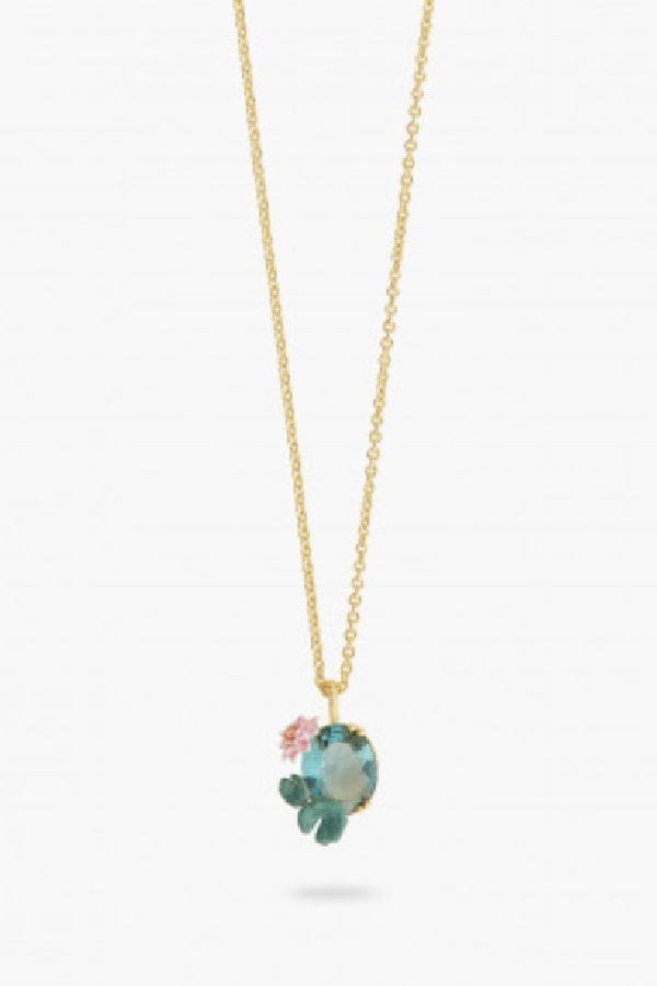 Collier pendentif fleur de lotus et pierre bleue des Néréides