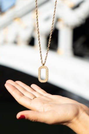 Sautoir à maillon suspendu et chaîne torsadée © Bénédicte