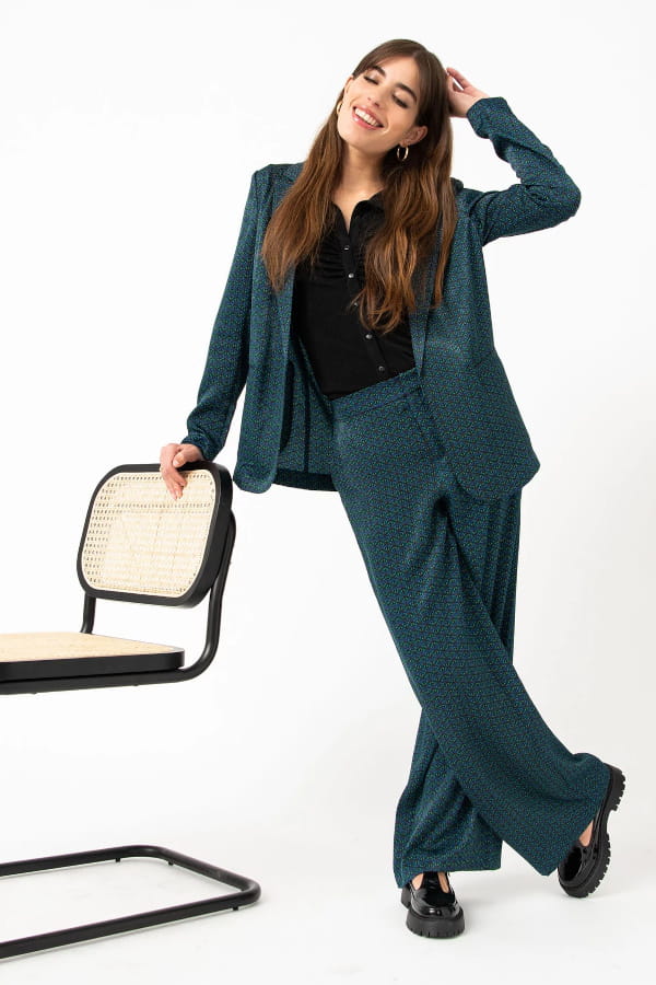 Pantalon large en satin fluide imprimé bleu de Gémo