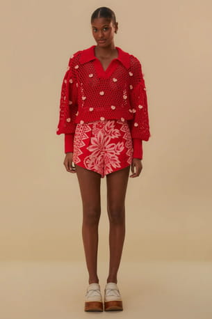 Pull rouge en maille à coeurs de Farm Rio