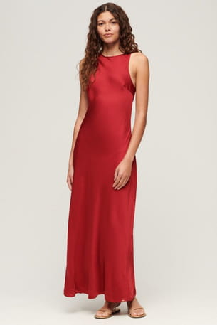 Robe rouge mi-longue en satin à dos nageur de Superdry
