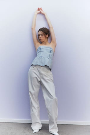Top bleu peplum facon bustier en denim de H&M