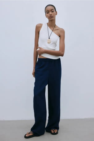 Pantalon bleu en lin mélangé avec taille élastique de H&M
