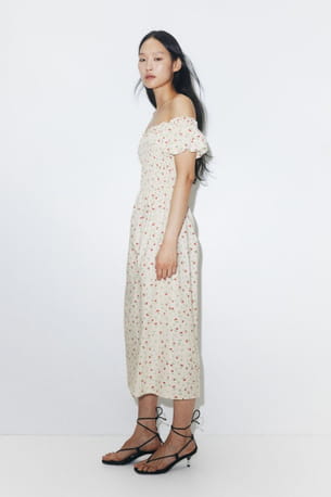 Robe crème et fleurs colorées aux épaules dénudées de H&M
