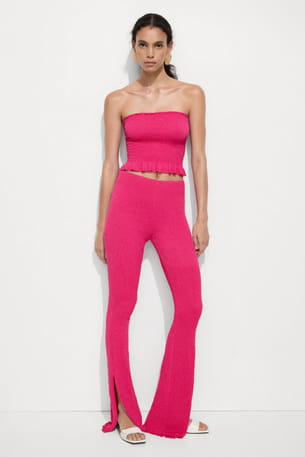Pantalon rose en maille torsadée de Mango