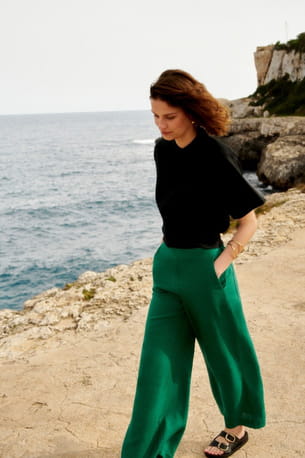 Pantalon en lin vert émeraude "Pandi" de Caroll