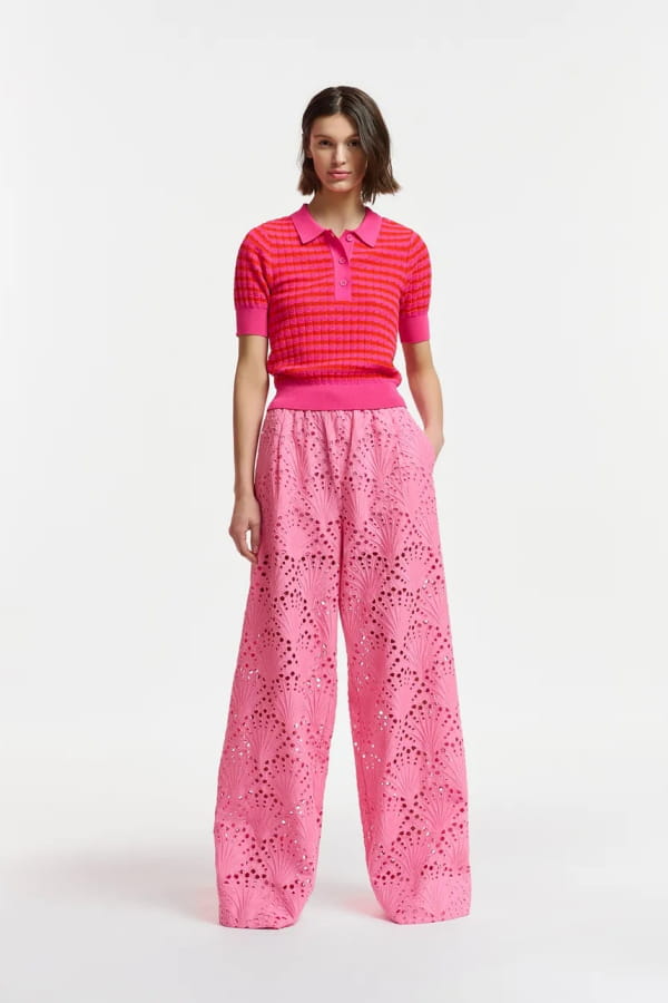 Pantalon rose en broderie anglaise de coton © Essentiel Antwerp