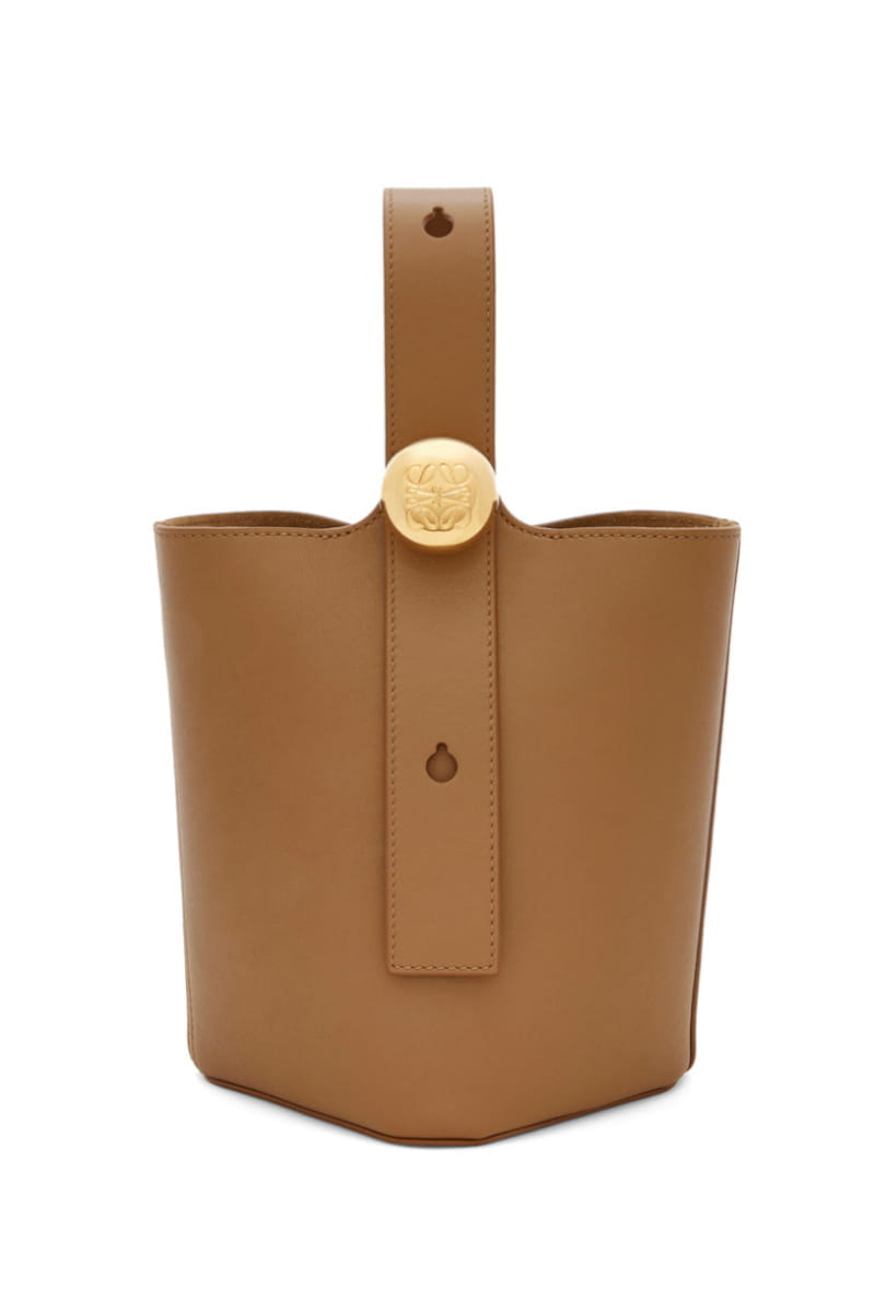 Sac seau camel en cuir de veau doux "Pebble Bucket" de Loewe