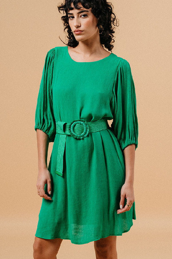 Robe courte ceinturée verte
