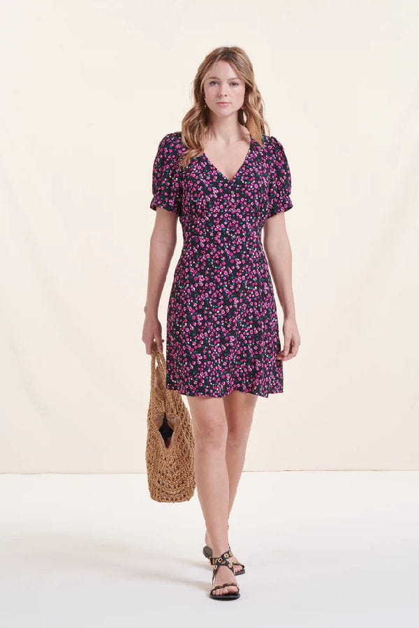 Robe courte noire cintrée à motifs de La Fée Maraboutée